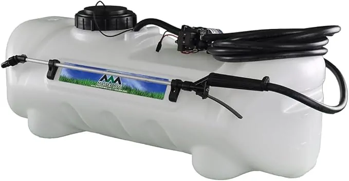 The Master Manufacturing 15-Gallon UTV & ATV Spot Sprayer is designed for gardeners, landowners, and small farm users. This sprayer comes with a 15-gallon translucent tank, an Everflo 1,0 GPM 12-volt diaphragm pump. It is made to mount on ATVs, UTVs, riding mowers, or utility carts, making it a good option for people who want less physical strain while gardening.